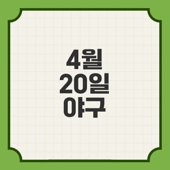 프로야구 팬이라면 주목! 2025년 4월 20일에는 흥미진진한 경기들이 여러분을 기다리고 있습니다. 이 날의 경기 일정, 팀 정보, 경기 시작 시간과 장소, 그리고 경기의 하이라이트까지 모든 정보를 한눈에 알아보겠습니다.