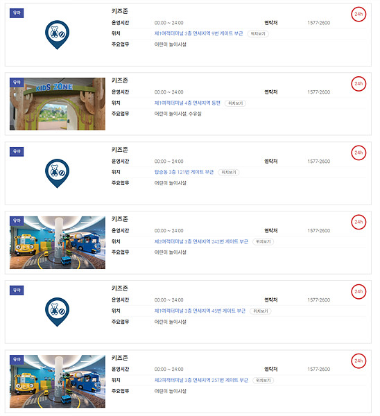 - 키즈존과 키즈카페는 24시간 운영됩니다.