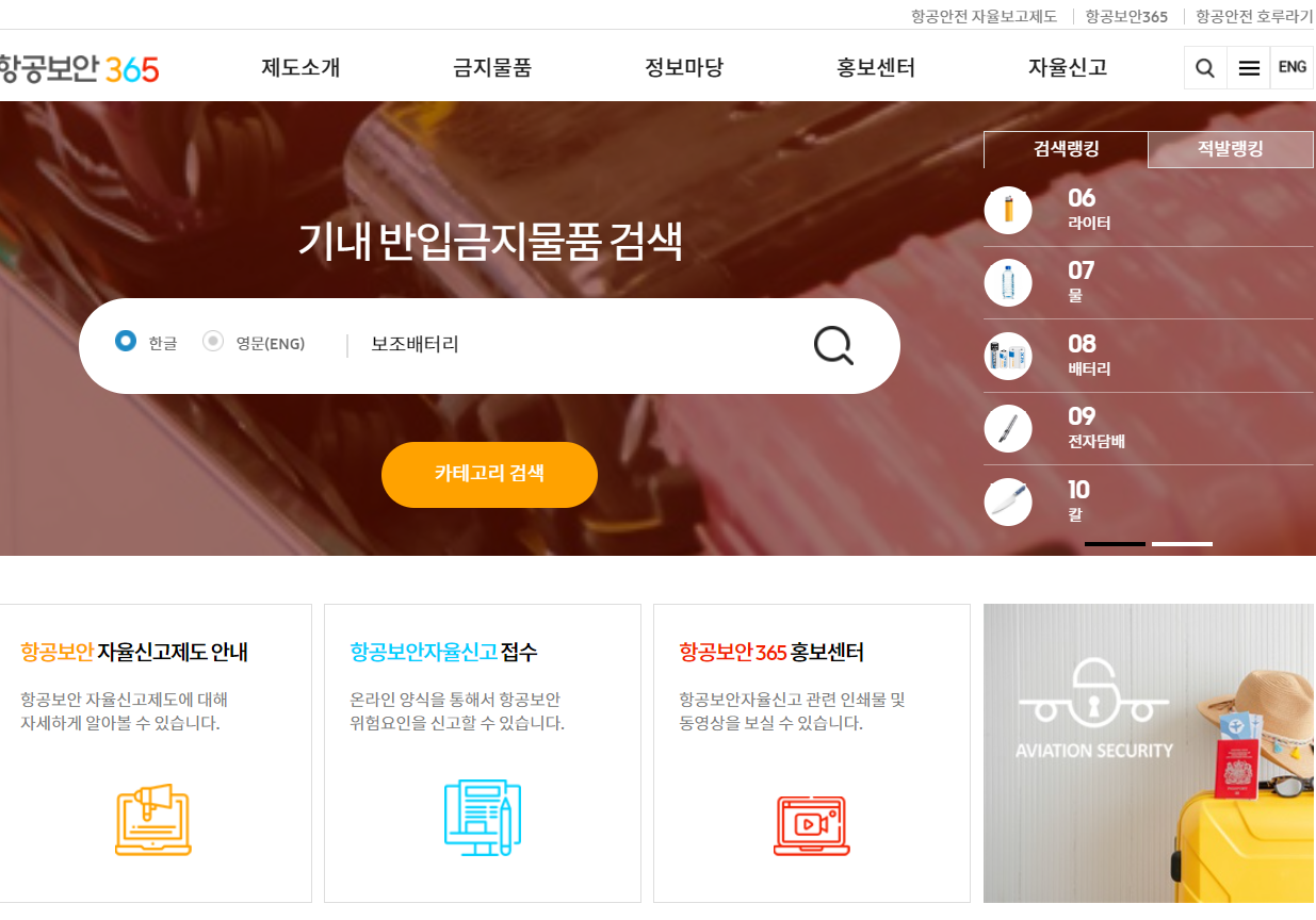 그래서 준비했습니다. 혹시 이 물건은 반입이 되나? 이건 안 되나? 이 모든 걸 확인할 수 있는 곳이 있습니다.