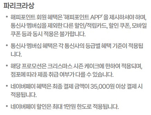 파리 크라상 크리스마스 케이크 할인