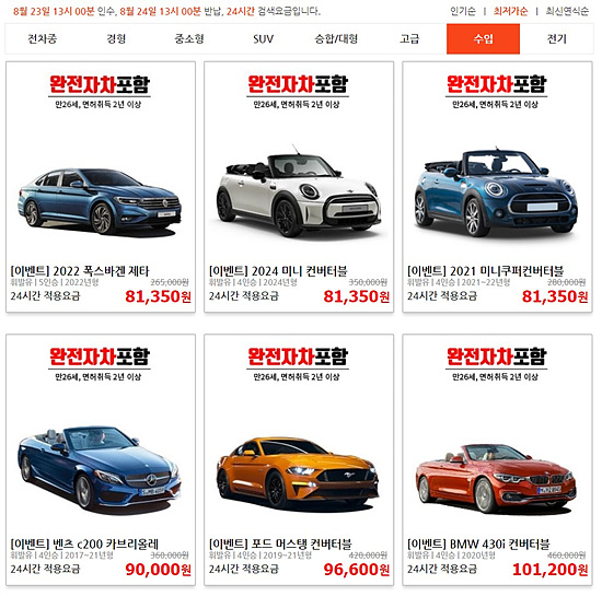 위에 사진은 극성수기 8월 23 ~ 24일 하루를 빌린다 가정하에 가격들입니다.