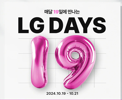 매월 19일에 행사가 LG전자 홈페이지를 통해 진행이 됩니다. 그간은 매달 달라지며, 상품들의 할인 혜택또한 달라집니다.