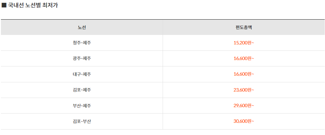 노선별 최저가(최대 20%)