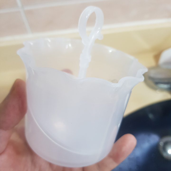 - 거품기에 500원 짜리 동전의 크기만큼의 양을 거품기에 넣어주세요.